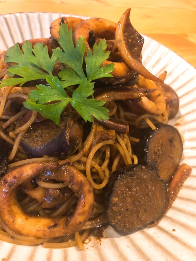 パスタを絡めなければ、普通におかずにもなります。黒ニンニク独特の甘味と、イカの塩気と旨味があいまって、相性抜群の美味しいスタミナパスタとなりました!